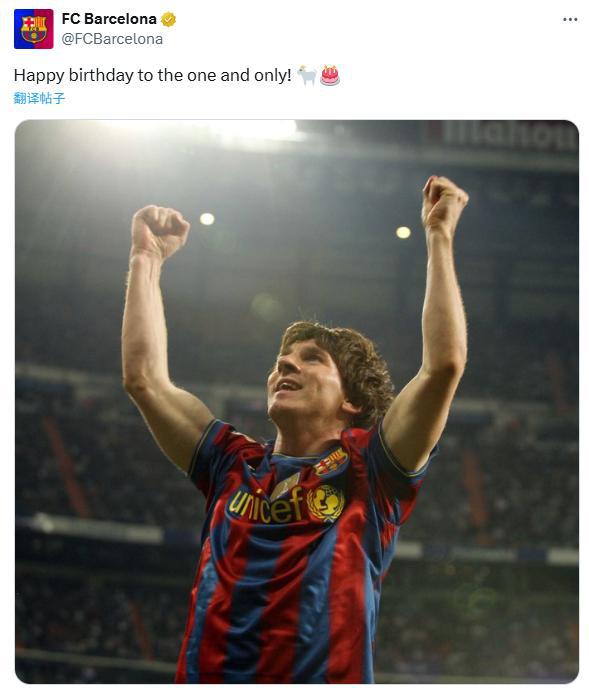 梅西38岁生日,巴萨官推送祝福:祝唯一的你生日快乐!